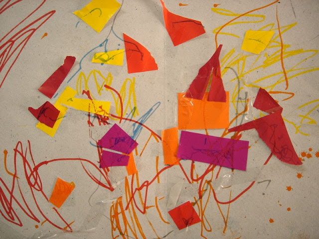 surgiu uma técnica mista. Além do papel de lustro e da fita-cola, terminou-o com canetas (acho que não gostou dos espaços vazios).