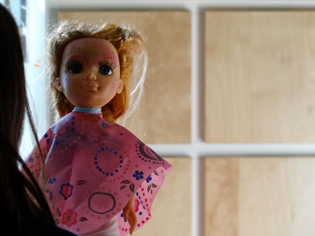 As colegas ficavam admiradas por eu deixar que ela tivesse o cabelo por baixo do umbigo e na nova escola já era conhecida pela miúda das tranças. Claro que o cabelo dá trabalho aos pais, principalmente quando os piolhos nos visitam, mas qual é o mal de deixá-la ter o comprido muito comprido? Prefero dizer não a outras coisas e ceder no caso do cabelo.