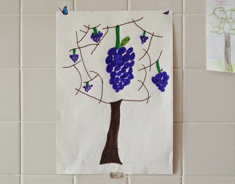 O desenho foi feito há um ano para um concurso sob o tema «dia da criança». Não ganhou o concurso, mas cá em casa teve direito a uma moldura e a um lugar na parede ♥︎.