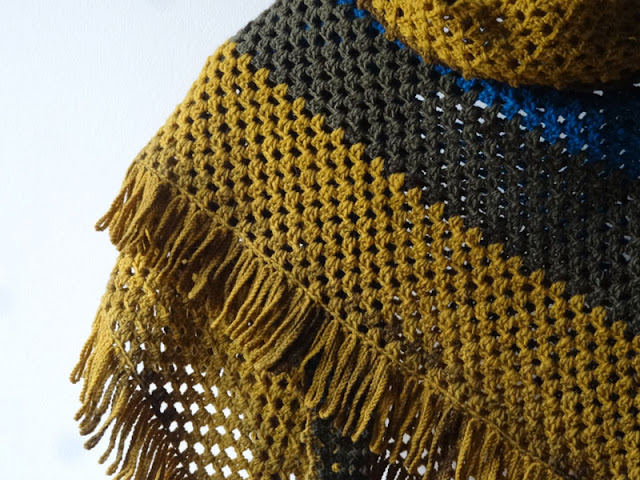 Pela altura do workshop ainda não tinha terminado a franja do meu xaile e as alunas não chegaram a vê-lo concluído. Ora aqui está!